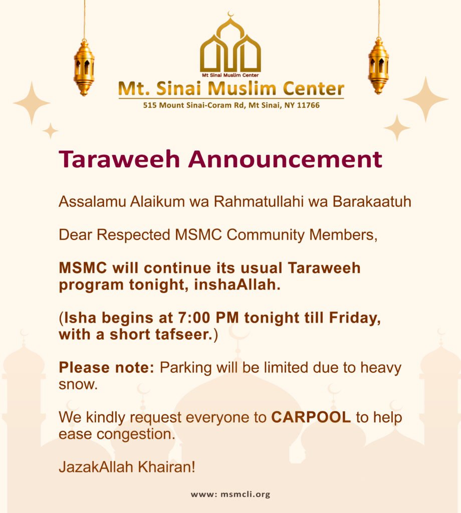 Events For Any Question Contact Information: Sr Sumaira (631) 827-4246Javeria Aziz (631) 819-3103 Location: 515 Mount Sinai-Coram Rd, Mt Sinai, NY 11766